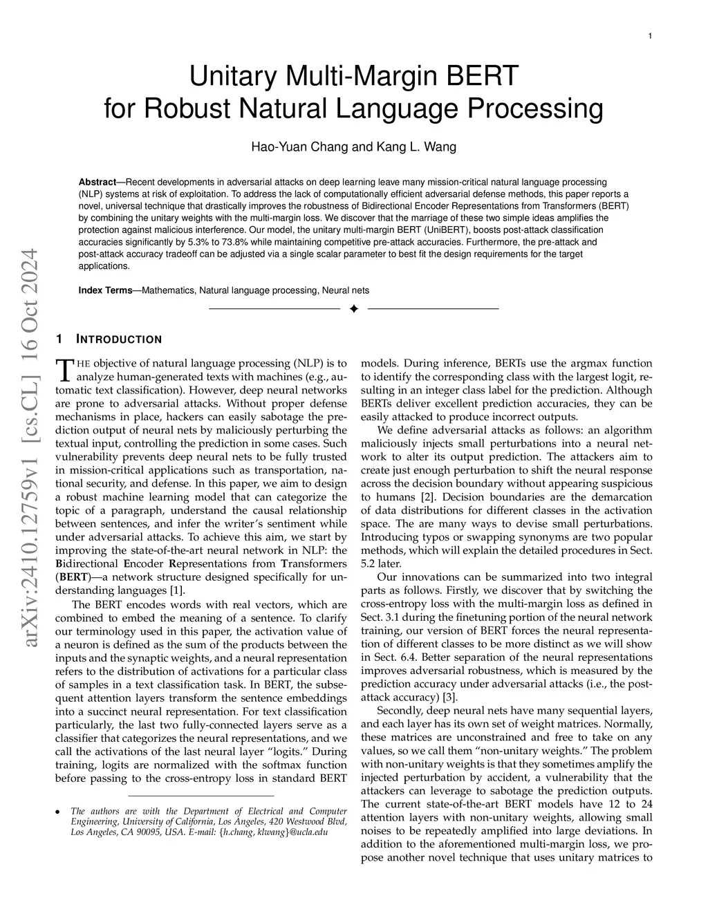 Unitary Multi-Margin BERT for Robust Natural Language Processing