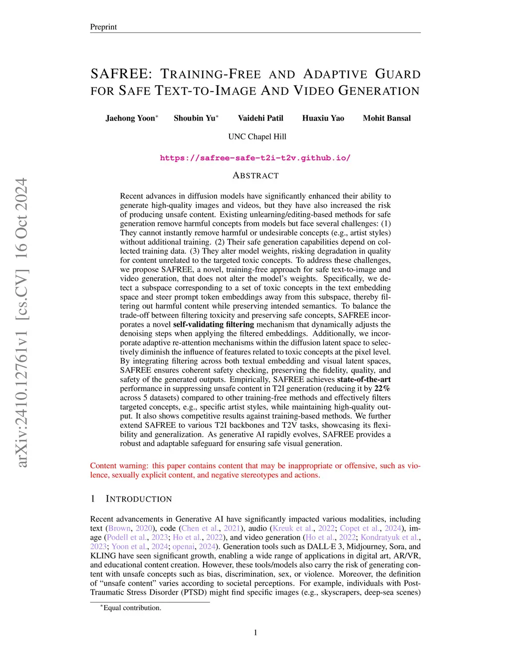 SAFREE: Training-Free and Adaptive Guard for Safe Text-to-Image And Video Generation
