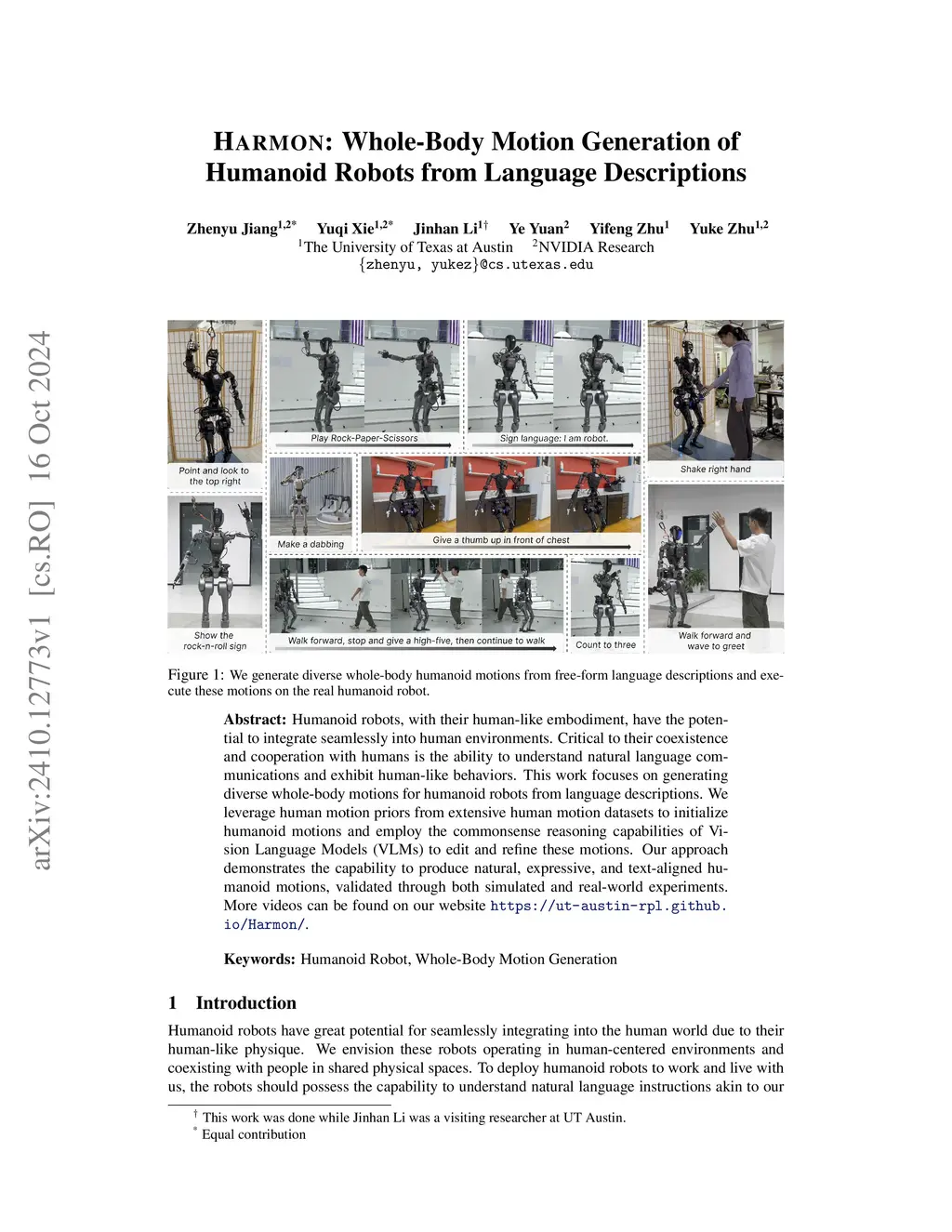 Harmon: Whole-Body Motion Generation of Humanoid Robots from Language