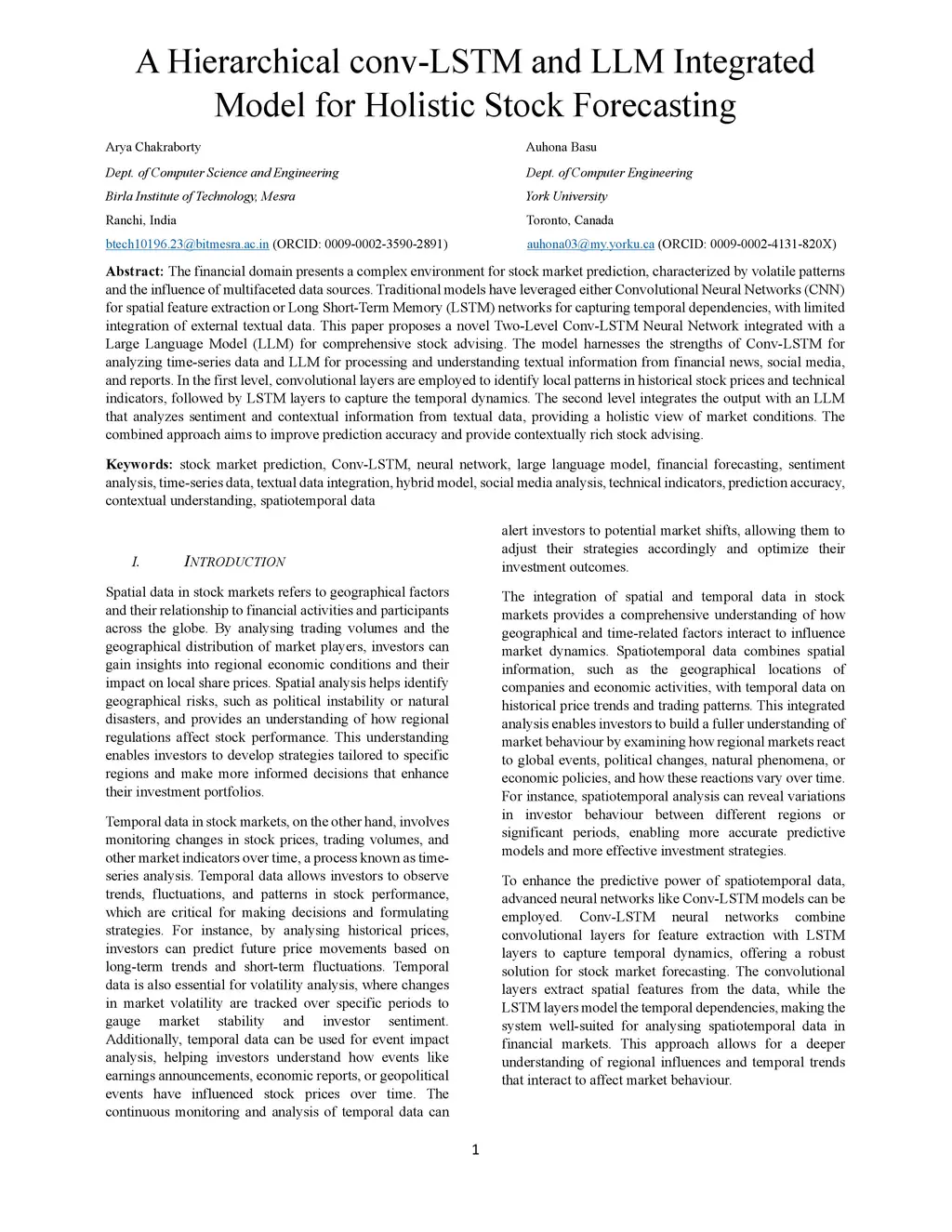 A Hierarchical conv-LSTM and LLM Integrated Model for Holistic Stock