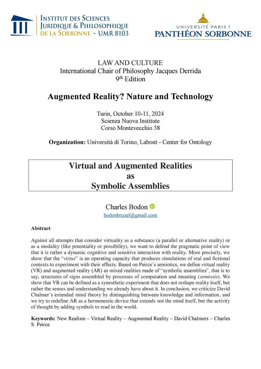 Against all attempts that consider virtuality as a substance (a parallel or alternative reality) or as a modality (like potentiality or possibility), we want to defend the pragmatic point of view that it is rather a dynamic cognitive and sensitive interaction with reality. More precisely, we show that the ``virtus'' is an operating capacity that produces simulations of real and fictional contexts to experiment with their effects. Based on Peirce's semiotics, we define virtual reality (VR) and augmented reality (AR) as mixed realities made of ``symbolic assemblies'', that is to say, structures of signs assembled by processes of computation and meaning (semiosis). We show that VR can be defined as a synesthetic experiment that does not reshape reality itself, but rather the senses and understanding we already have about it. In conclusion, we criticize David Chalmer's extended mind theory by distinguishing between knowledge and information, and we try to redefine AR as a hermeneutic device that extends not the mind itself, but the activity of thought by adding symbols to read in the world.