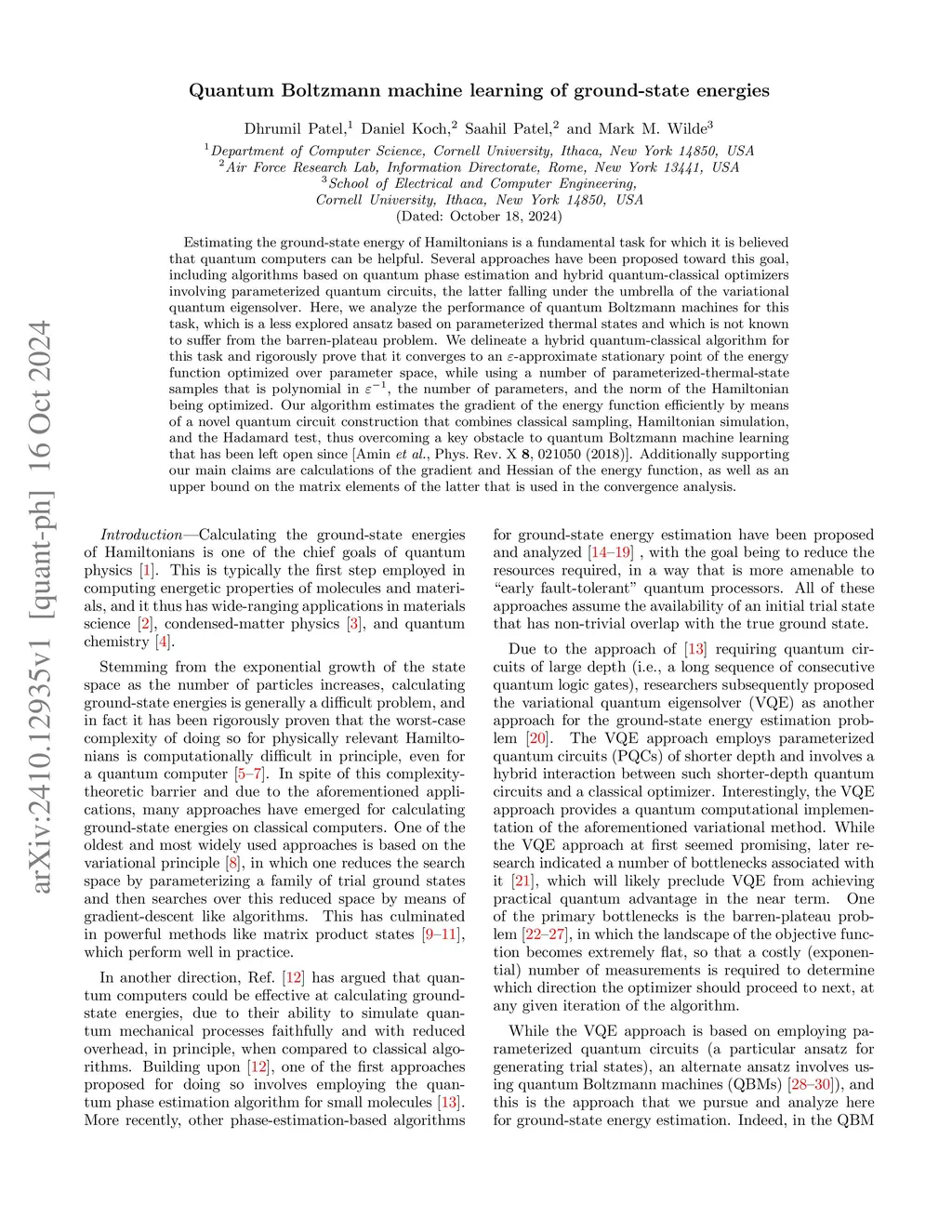 Quantum Boltzmann machine learning of ground-state energies