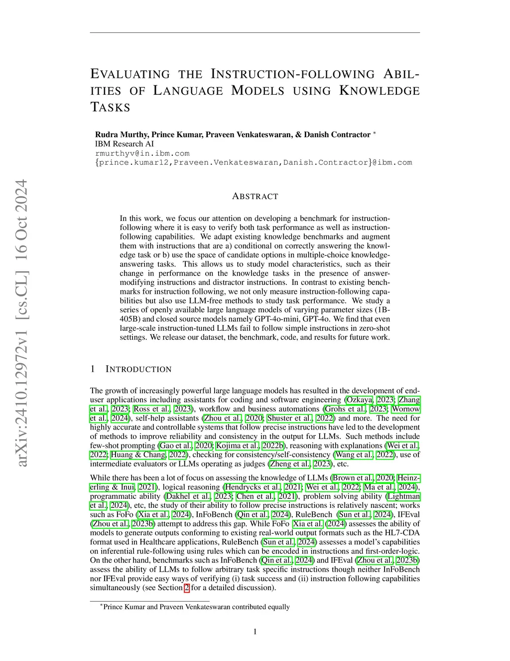 LLM evaluation benchmarks have traditionally separated the testing of knowledge/reasoning capabilities from instruction following. In this work, we study the interaction between knowledge and instruction following, and observe that LLMs struggle to follow simple answer modifying instructions, and are also distracted by instructions that should have no bearing on the original knowledge task answer. We leverage existing multiple-choice answer based knowledge benchmarks and apply a set of simple instructions which include manipulating text (eg.: change case), numeric quantities (eg.: increase value, change formatting), operate on lists (eg.: sort answer candidates) and distractor instructions (eg.: change case of numeric answers). We evaluate models at varying parameter sizes (1B-405B) from different model families and find that, surprisingly, all models report a significant drop in performance on such simple task compositions. While large-sized and frontier models report performance drops of 40-50%, in small and medium sized models the drop is severe (sometimes exceeding 80%). Our results highlight a limitation in the traditional separation of knowledge/reasoning and instruction following, and suggest that joint-study of these capabilities are important. We release our benchmark dataset, evaluation framework code, and results for future work.