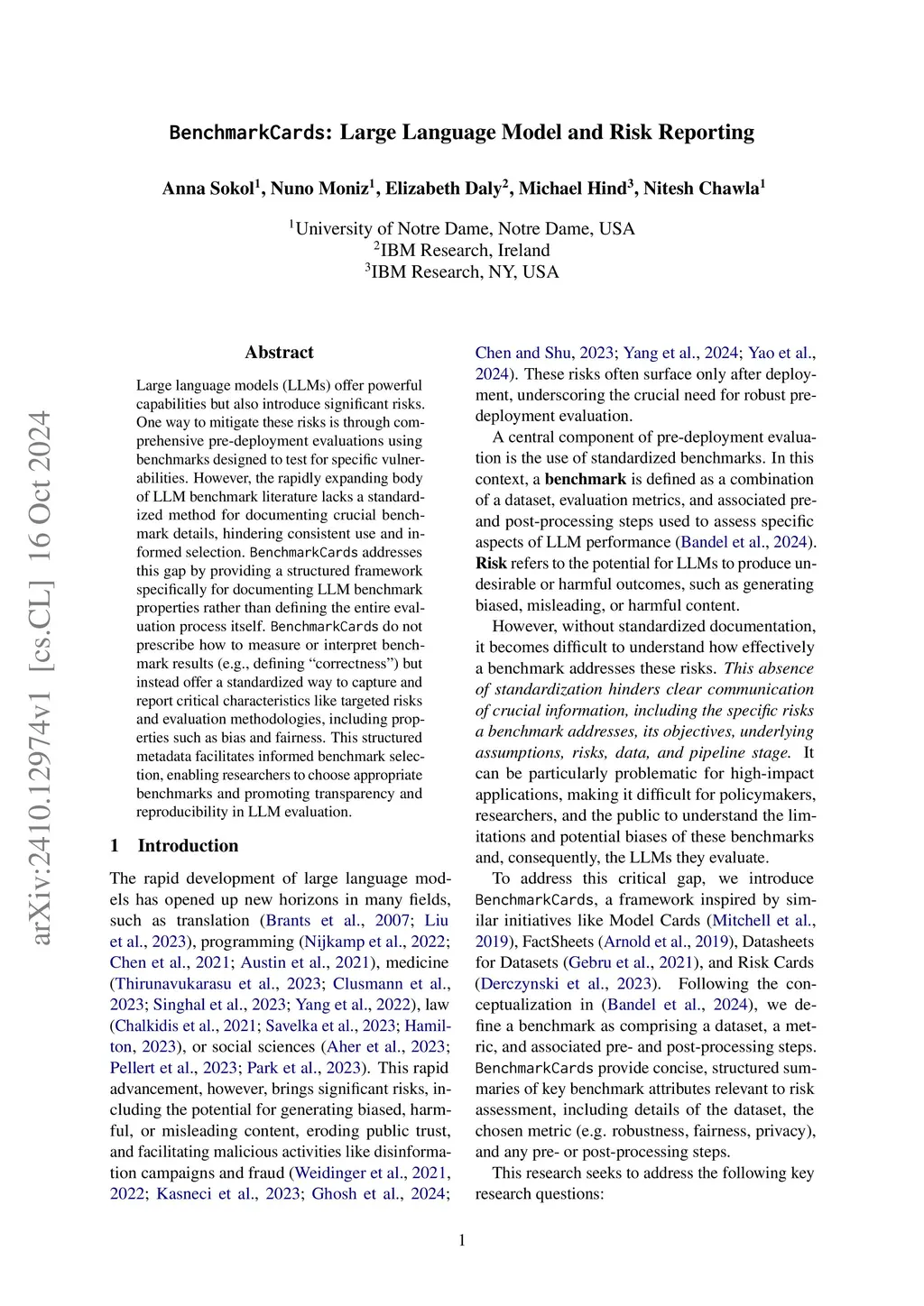 BenchmarkCards: Standardized Documentation for Large Language Model Benchmarks