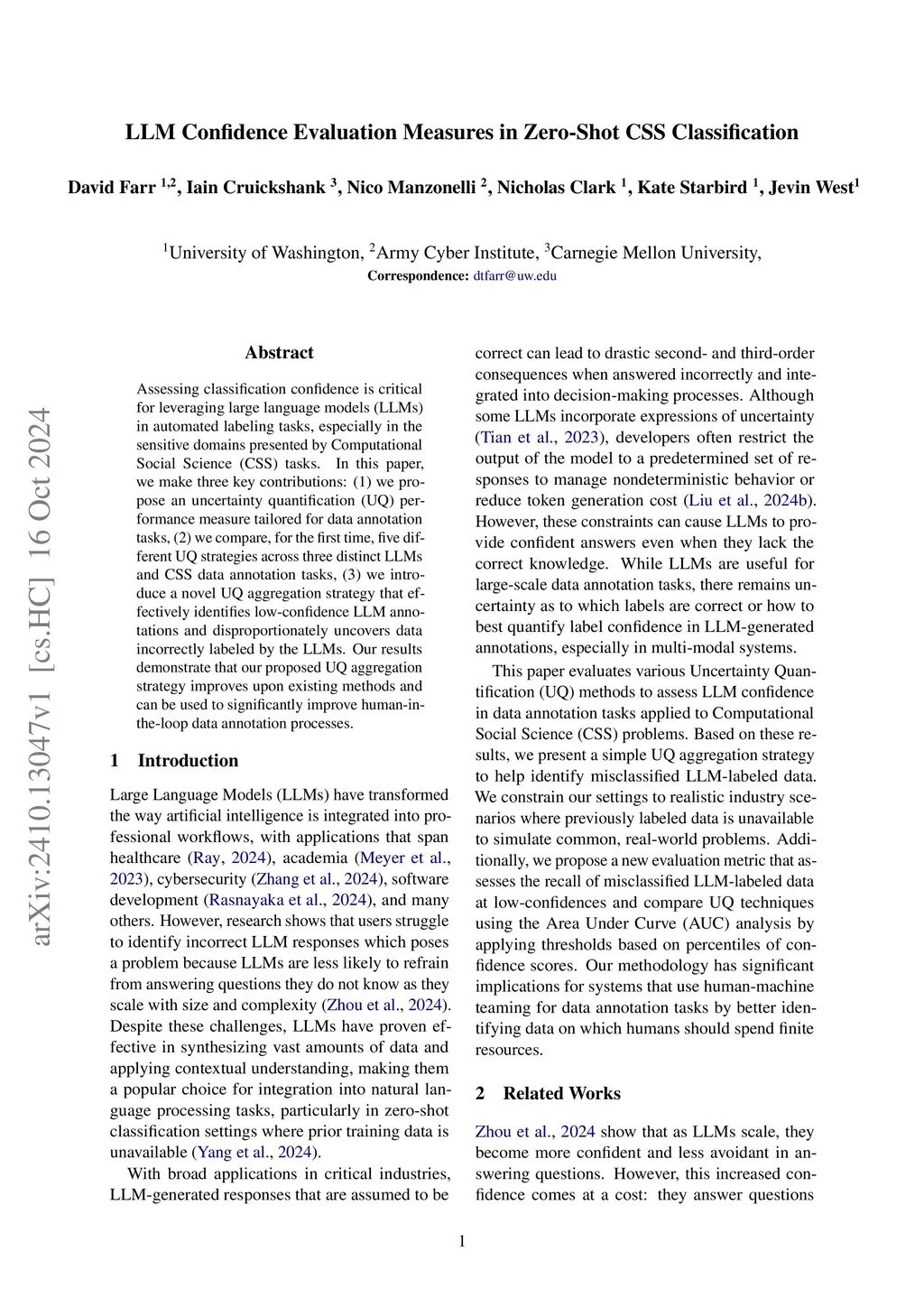 LLM Confidence Evaluation Measures in Zero-Shot CSS Classification
