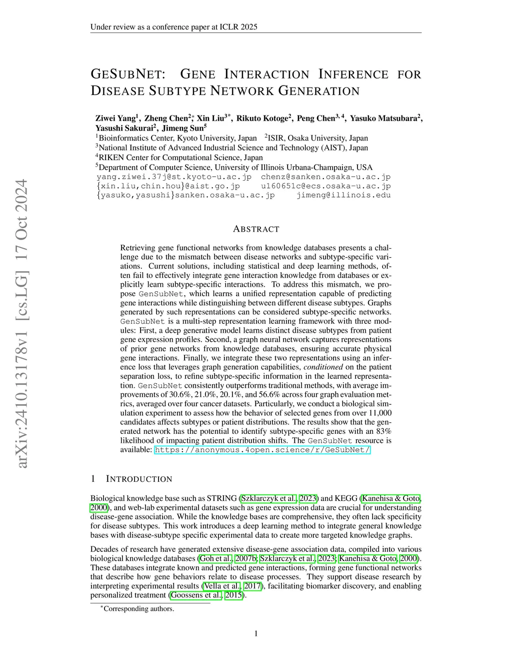GeSubNet: Gene Interaction Inference for Disease Subtype Network Generation