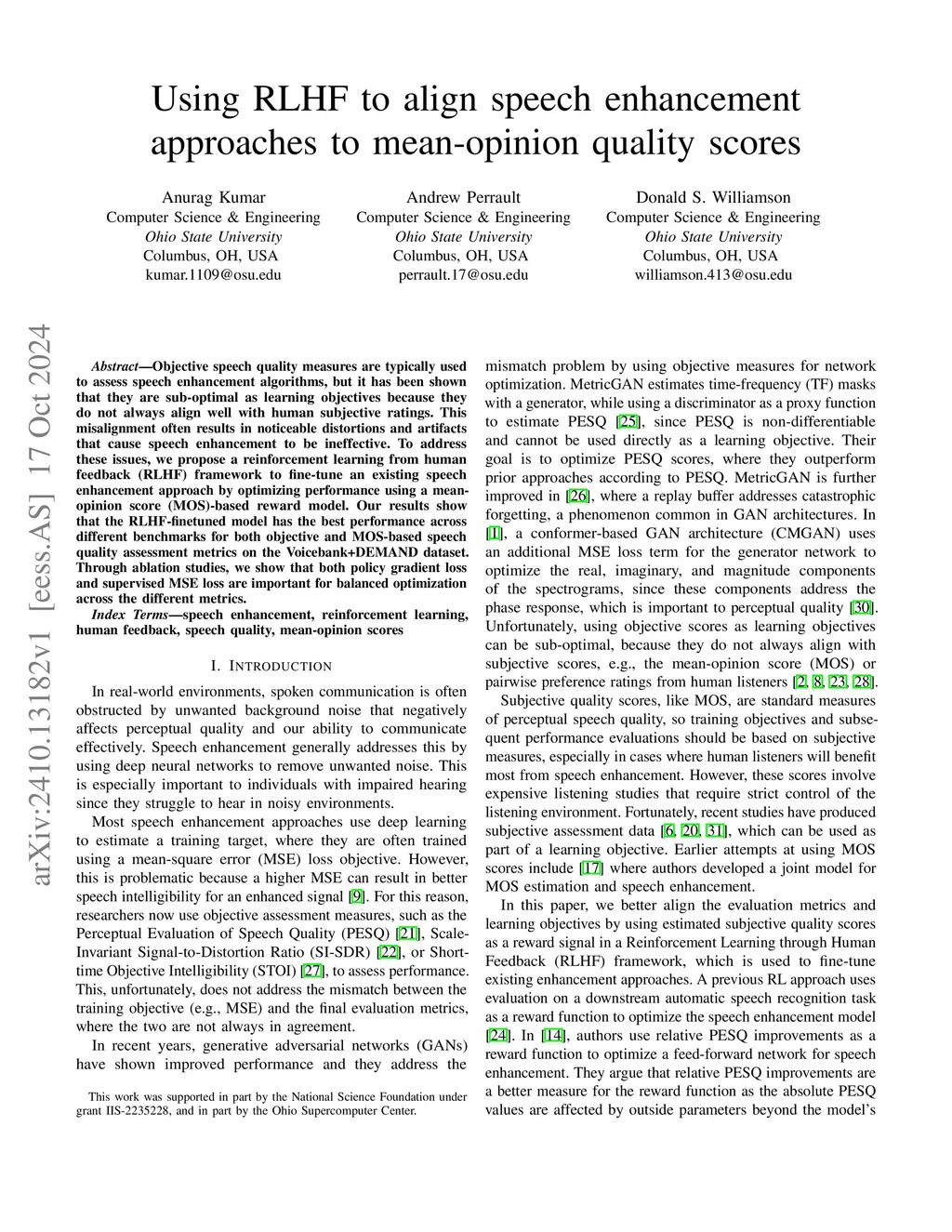 Using RLHF to align speech enhancement approaches to mean-opinion