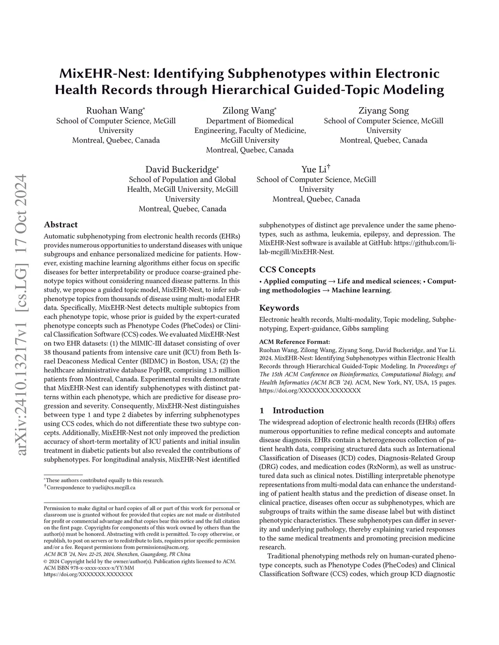 MixEHR-Nest: Identifying Subphenotypes within Electronic Health Records