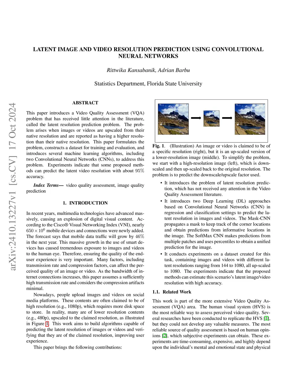 Latent Image and Video Resolution Prediction using Convolutional Neural
