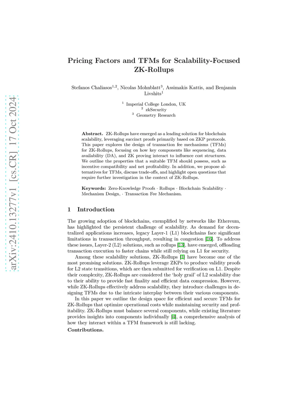 Pricing Factors and TFMs for Scalability-Focused ZK-Rollups