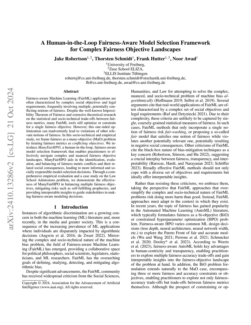 Fairness-aware Machine Learning (FairML) applications are often characterized by complex social objectives and legal requirements, frequently involving multiple, potentially conflicting notions of fairness. Despite the well-known Impossibility Theorem of Fairness and extensive theoretical research on the statistical and socio-technical trade-offs between fairness metrics, many FairML tools still optimize or constrain for a single fairness objective. However, this one-sided optimization can inadvertently lead to violations of other relevant notions of fairness. In this socio-technical and empirical study, we frame fairness as a many-objective (MaO) problem by treating fairness metrics as conflicting objectives. We introduce ManyFairHPO, a human-in-the-loop, fairness-aware model selection framework that enables practitioners to effectively navigate complex and nuanced fairness objective landscapes. ManyFairHPO aids in the identification, evaluation, and balancing of fairness metric conflicts and their related social consequences, leading to more informed and socially responsible model-selection decisions. Through a comprehensive empirical evaluation and a case study on the Law School Admissions problem, we demonstrate the effectiveness of ManyFairHPO in balancing multiple fairness objectives, mitigating risks such as self-fulfilling prophecies, and providing interpretable insights to guide stakeholders in making fairness-aware modeling decisions.
