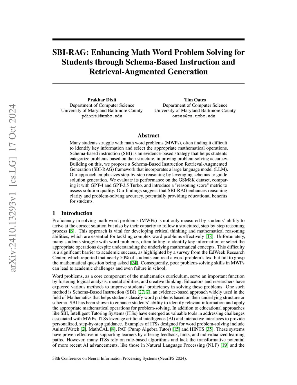 SBI-RAG: Enhancing Math Word Problem Solving for Students through