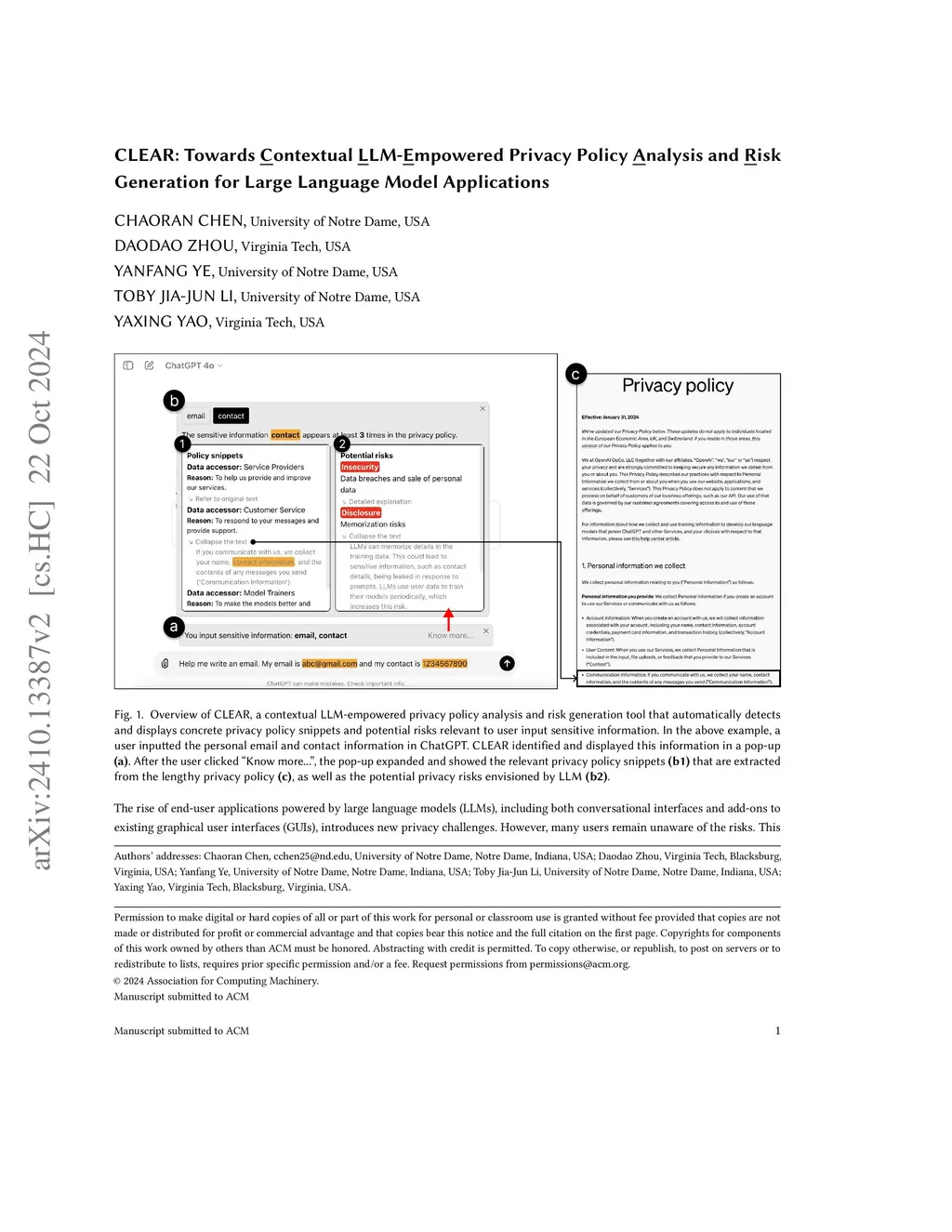 CLEAR: Towards Contextual LLM-Empowered Privacy Policy Analysis and Risk Generation for Large Language Model Applications