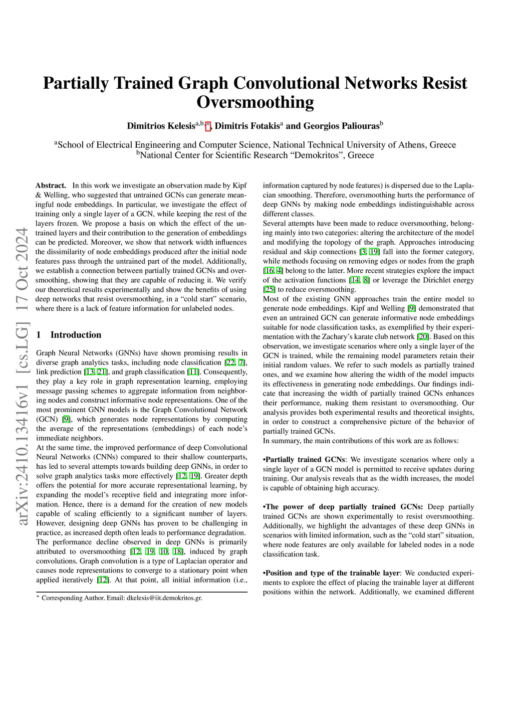 In this work we investigate an observation made by Kipf \& Welling, who suggested that untrained GCNs can generate meaningful node embeddings. In particular, we investigate the effect of training only a single layer of a GCN, while keeping the rest of the layers frozen. We propose a basis on which the effect of the untrained layers and their contribution to the generation of embeddings can be predicted. Moreover, we show that network width influences the dissimilarity of node embeddings produced after the initial node features pass through the untrained part of the model. Additionally, we establish a connection between partially trained GCNs and oversmoothing, showing that they are capable of reducing it. We verify our theoretical results experimentally and show the benefits of using deep networks that resist oversmoothing, in a ``cold start'' scenario, where there is a lack of feature information for unlabeled nodes.