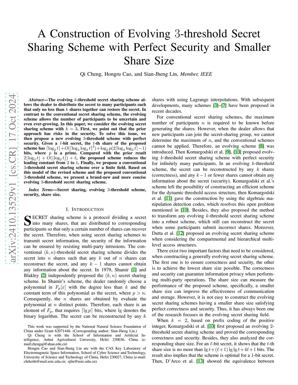 Perfect Security and Smaller Share Size