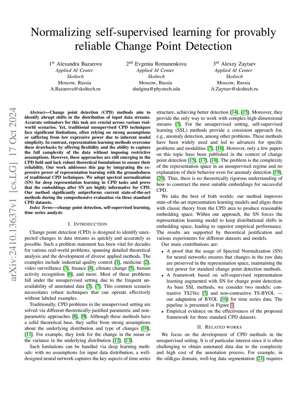 Normalizing self-supervised learning for provably reliable Change Point