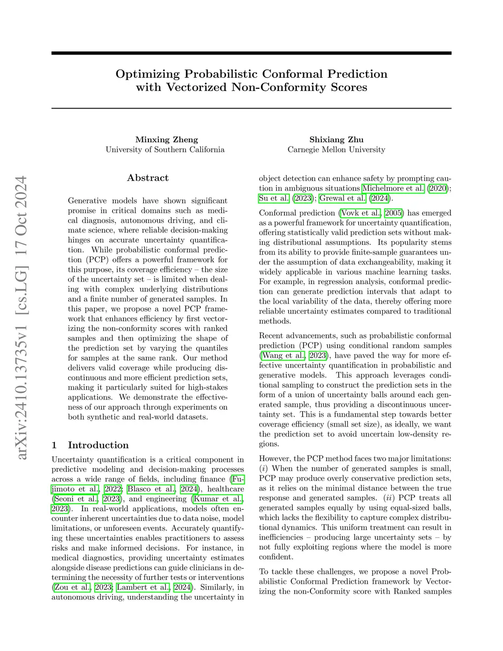 Generative Conformal Prediction with Vectorized Non-Conformity Scores