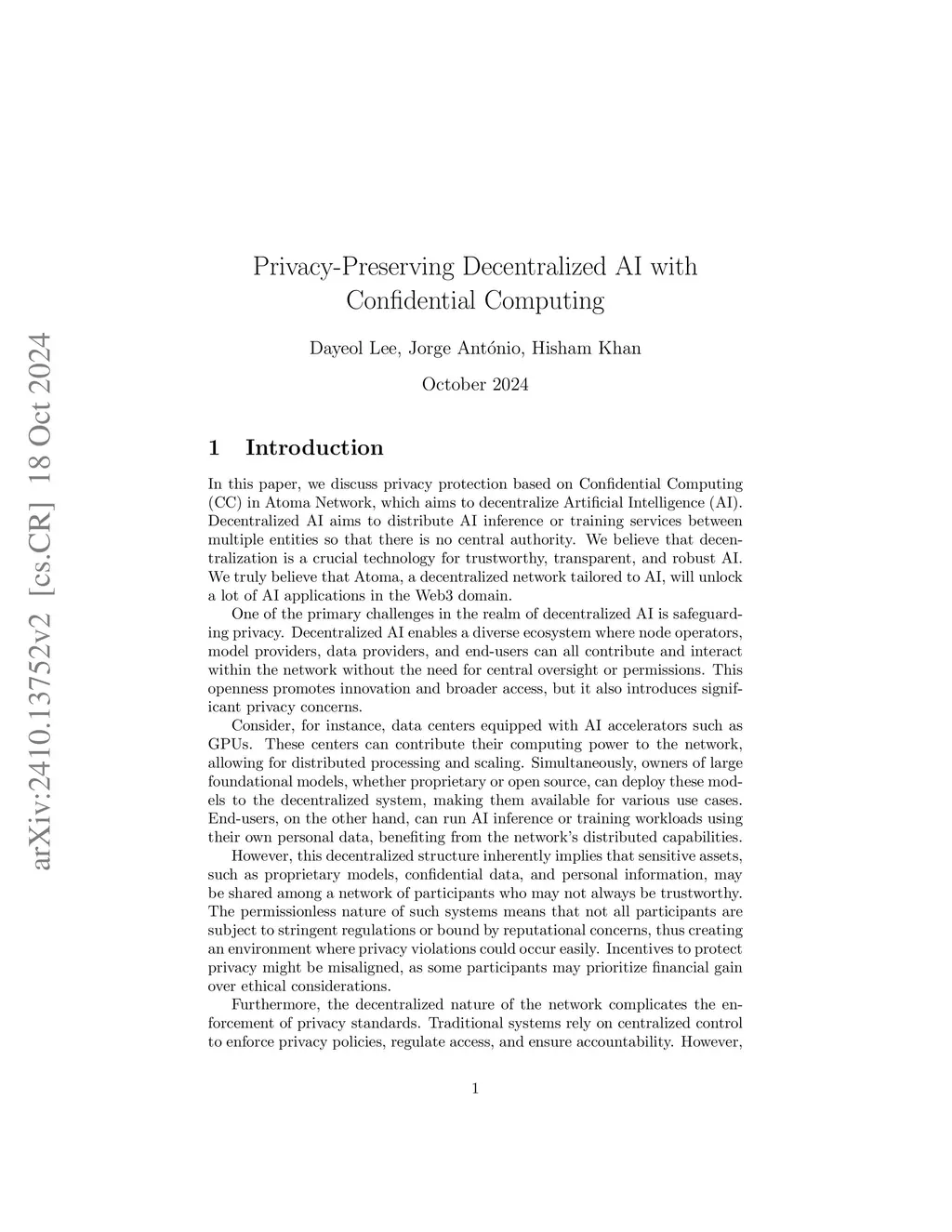 Privacy-Preserving Decentralized AI with Confidential Computing