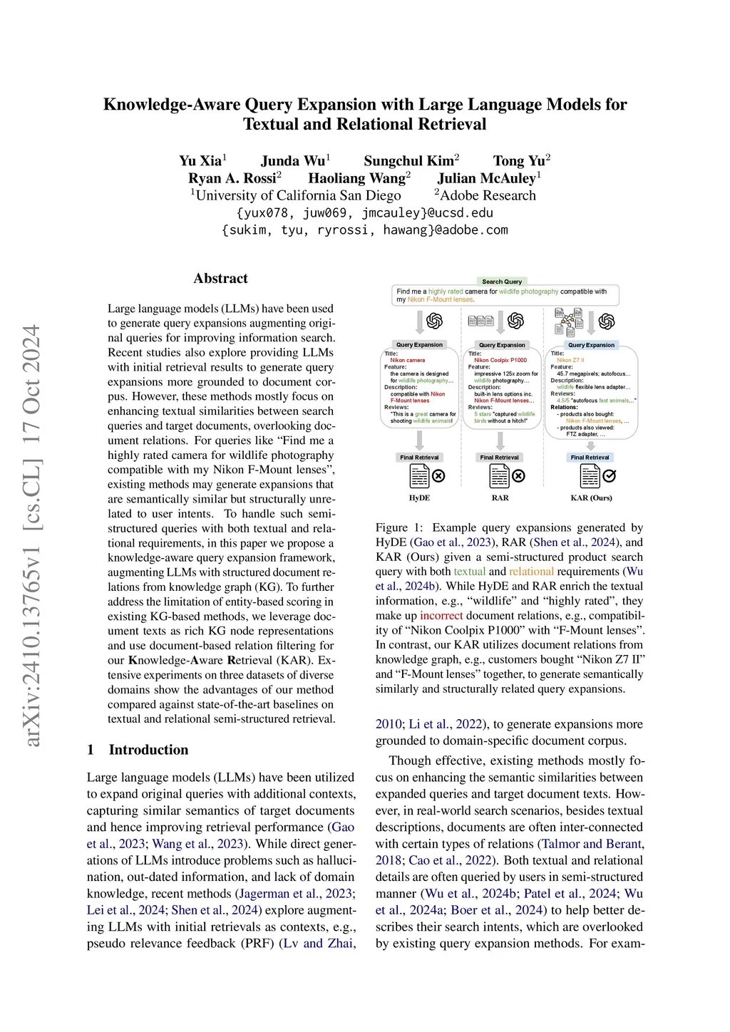 Knowledge-Aware Query Expansion with Large Language Models for Textual and Relational Retrieval