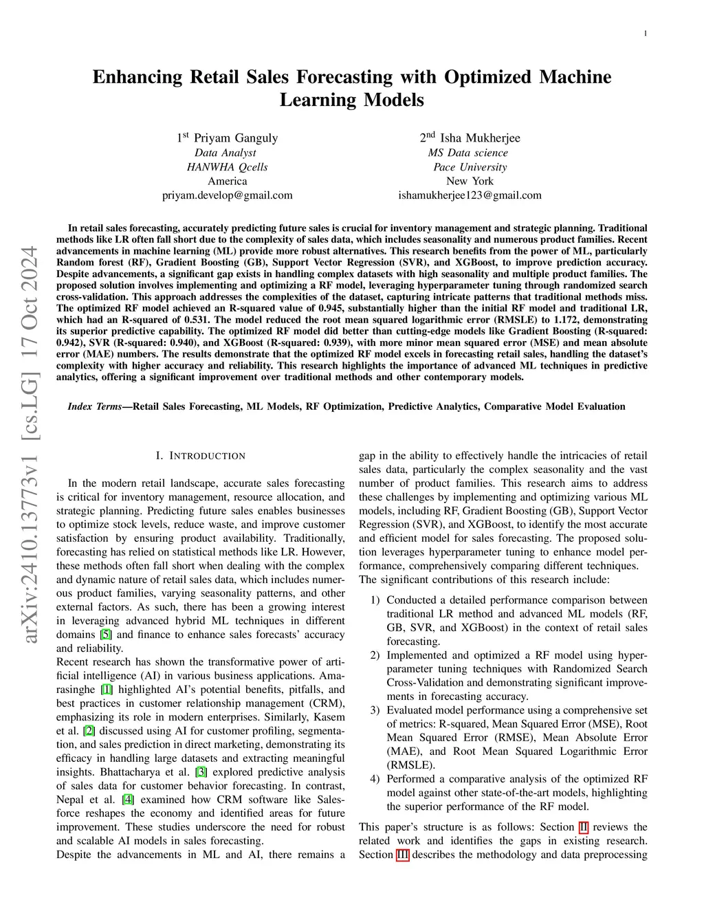 Enhancing Retail Sales Forecasting with Optimized Machine Learning