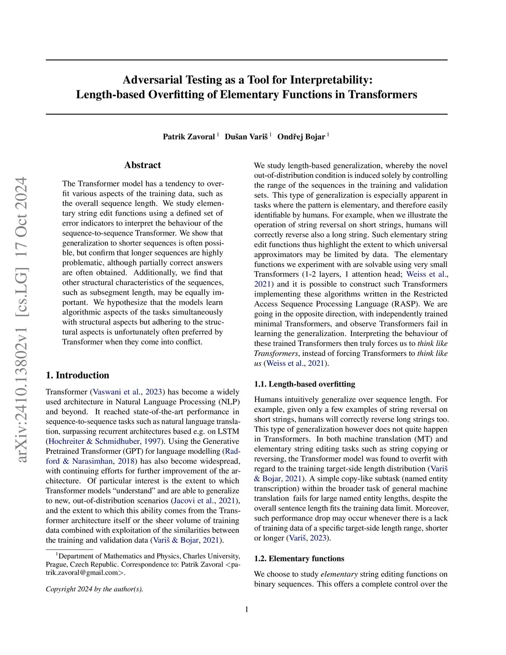The Transformer model has a tendency to overfit various aspects of the training data, such as the overall sequence length. We study elementary string edit functions using a defined set of error indicators to interpret the behaviour of the sequence-to-sequence Transformer. We show that generalization to shorter sequences is often possible, but confirm that longer sequences are highly problematic, although partially correct answers are often obtained. Additionally, we find that other structural characteristics of the sequences, such as subsegment length, may be equally important. We hypothesize that the models learn algorithmic aspects of the tasks simultaneously with structural aspects but adhering to the structural aspects is unfortunately often preferred by Transformer when they come into conflict.