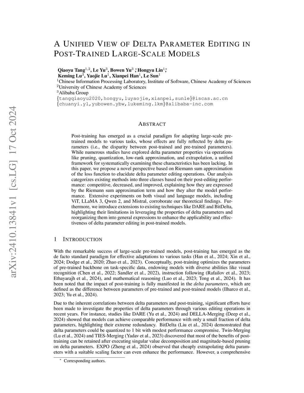 A Unified View of Delta Parameter Editing in Post-Trained Large-Scale