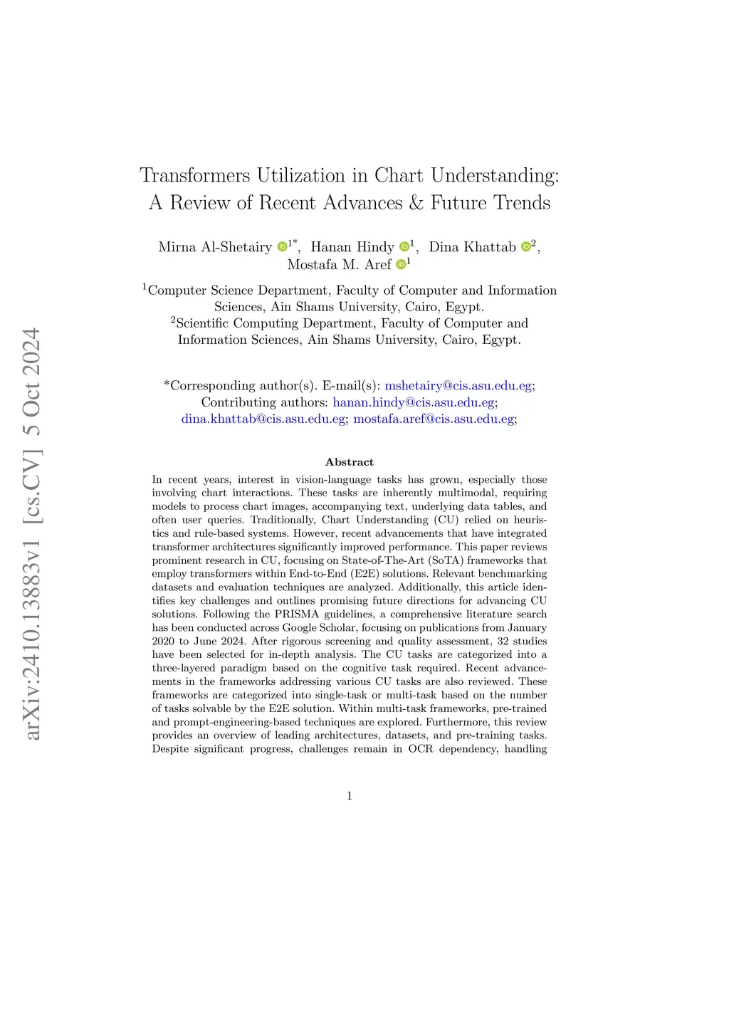 Transformers Utilization in Chart Understanding: A Review of Recent