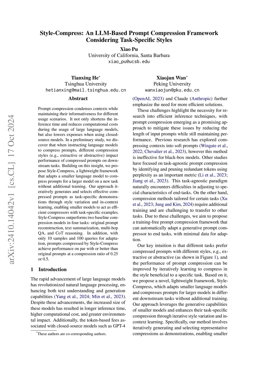 Style-Compress: An LLM-Based Prompt Compression Framework Considering