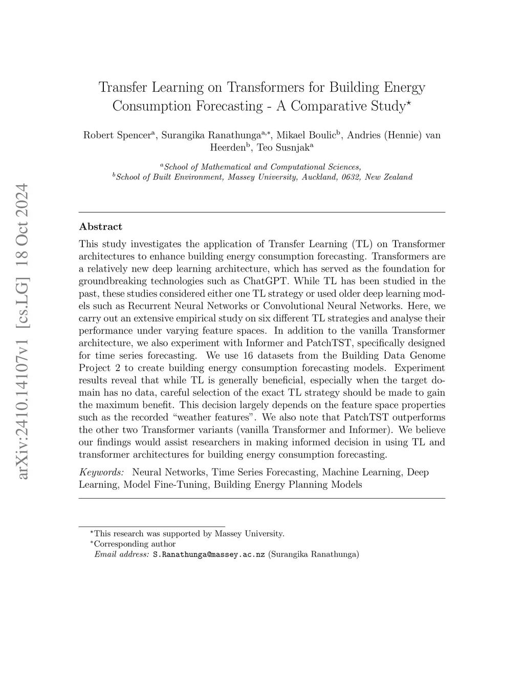 This study investigates the application of Transfer Learning (TL) on Transformer architectures to enhance building energy consumption forecasting. Transformers are a relatively new deep learning architecture, which has served as the foundation for groundbreaking technologies such as ChatGPT. While TL has been studied in the past, prior studies considered either one data-centric TL strategy or used older deep learning models such as Recurrent Neural Networks or Convolutional Neural Networks. Here, we carry out an extensive empirical study on six different data-centric TL strategies and analyse their performance under varying feature spaces. In addition to the vanilla Transformer architecture, we also experiment with Informer and PatchTST, specifically designed for time series forecasting. We use 16 datasets from the Building Data Genome Project 2 to create building energy consumption forecasting models. Experimental results reveal that while TL is generally beneficial, especially when the target domain has no data, careful selection of the exact TL strategy should be made to gain the maximum benefit. This decision largely depends on the feature space properties such as the recorded weather features. We also note that PatchTST outperforms the other two Transformer variants (vanilla Transformer and Informer). Our findings advance the building energy consumption forecasting using advanced approaches like TL and Transformer architectures.