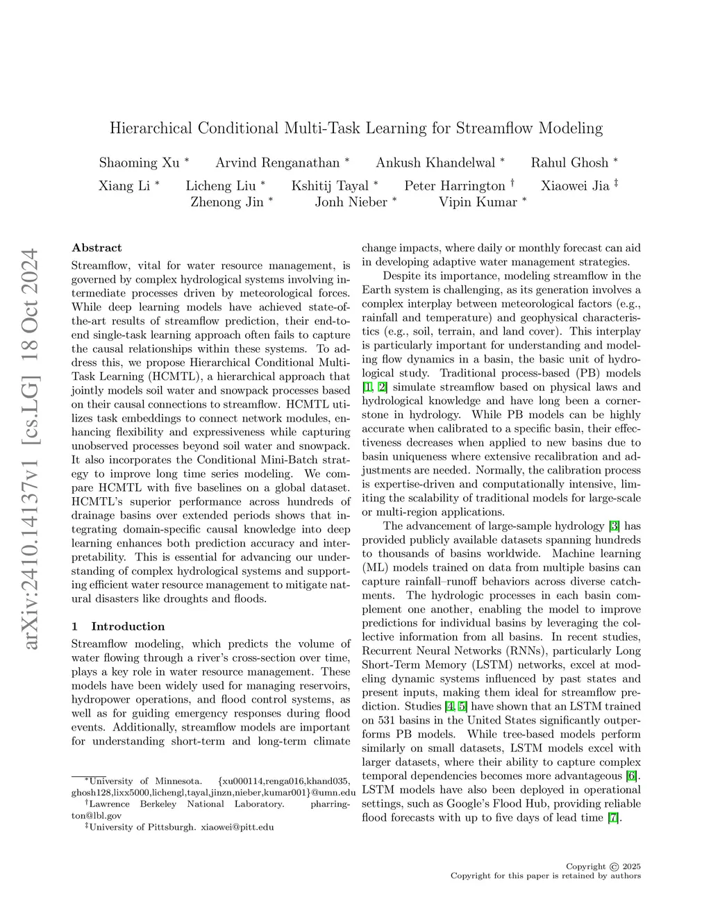 Hierarchical Conditional Multi-Task Learning for Streamflow Modeling