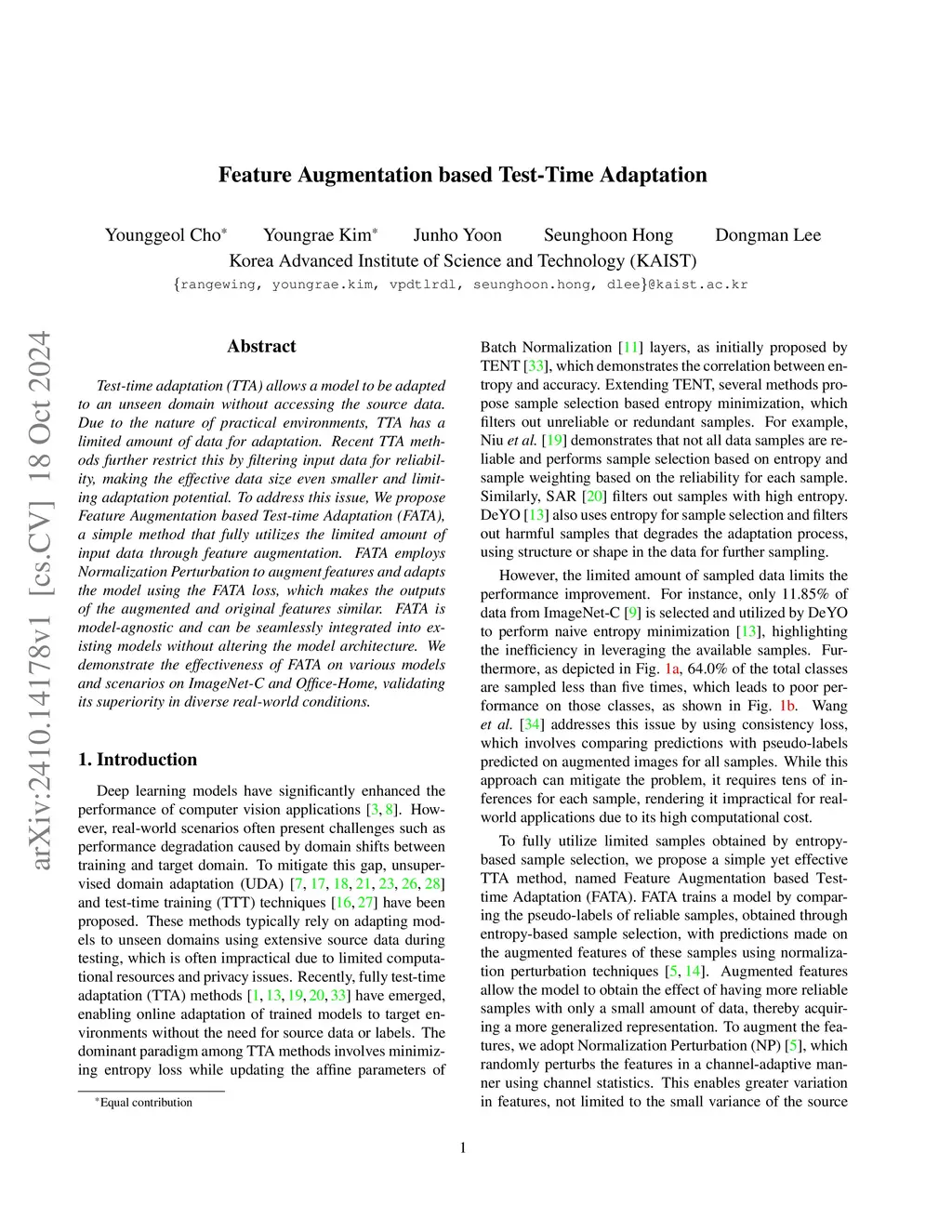 Feature Augmentation based Test-Time Adaptation