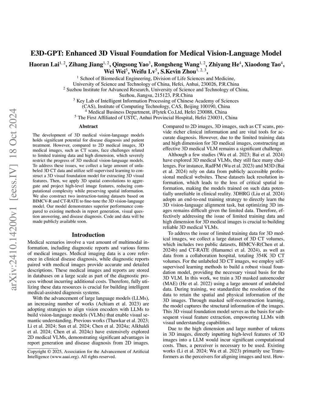 E3D-GPT: Enhanced 3D Visual Foundation for Medical Vision-Language Model