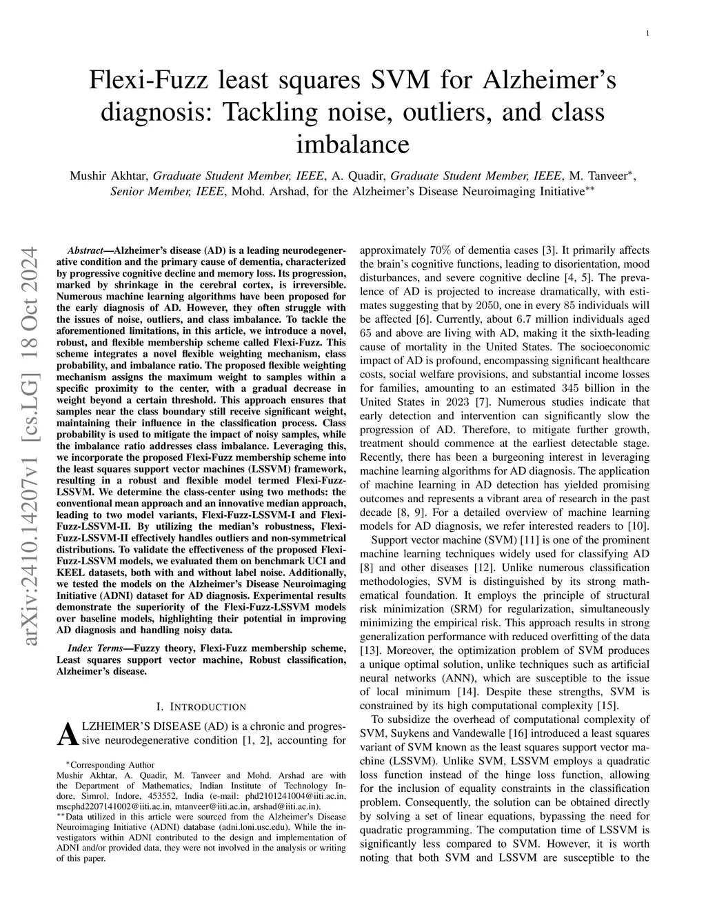 Flexi-Fuzz least squares SVM for Alzheimer's diagnosis: Tackling noise,