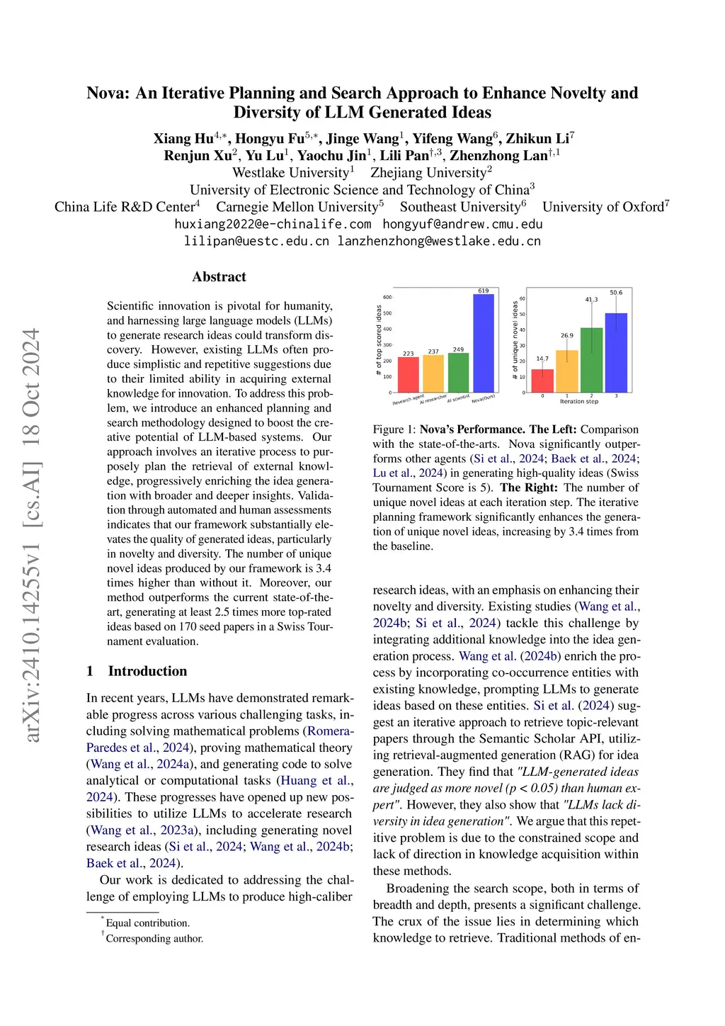 Nova: An Iterative Planning and Search Approach to Enhance Novelty and