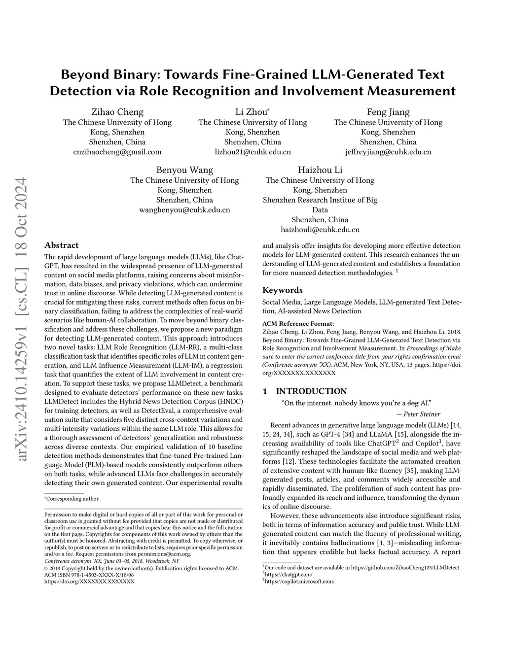 Beyond Binary: Towards Fine-Grained LLM-Generated Text Detection via Role Recognition and Involvement Measurement