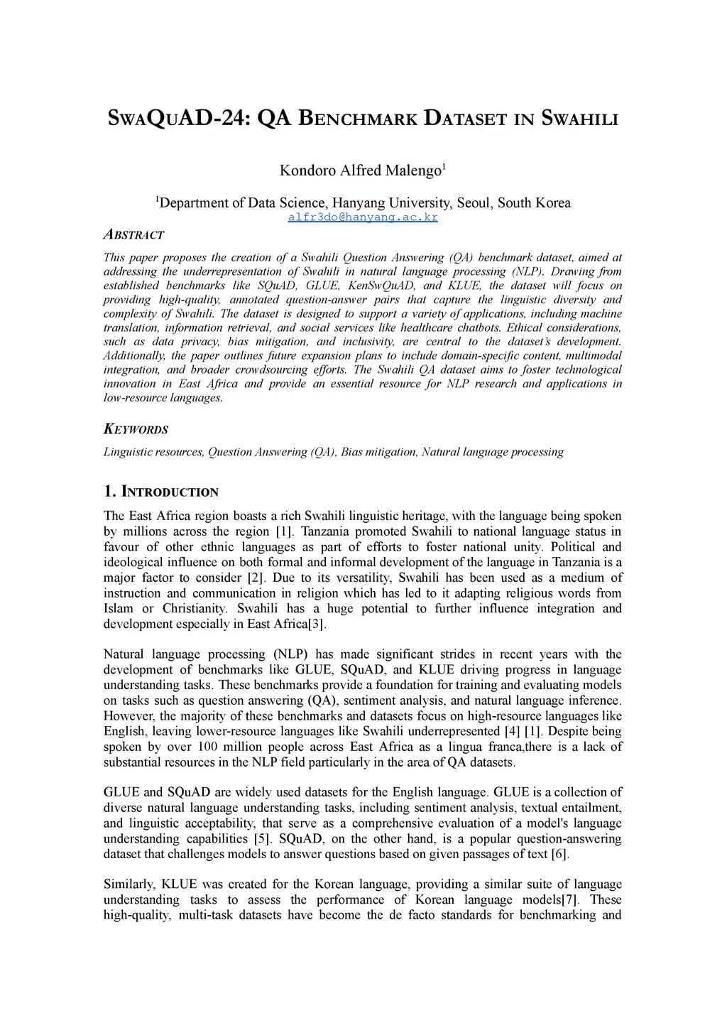 SwaQuAD-24: QA Benchmark Dataset in Swahili