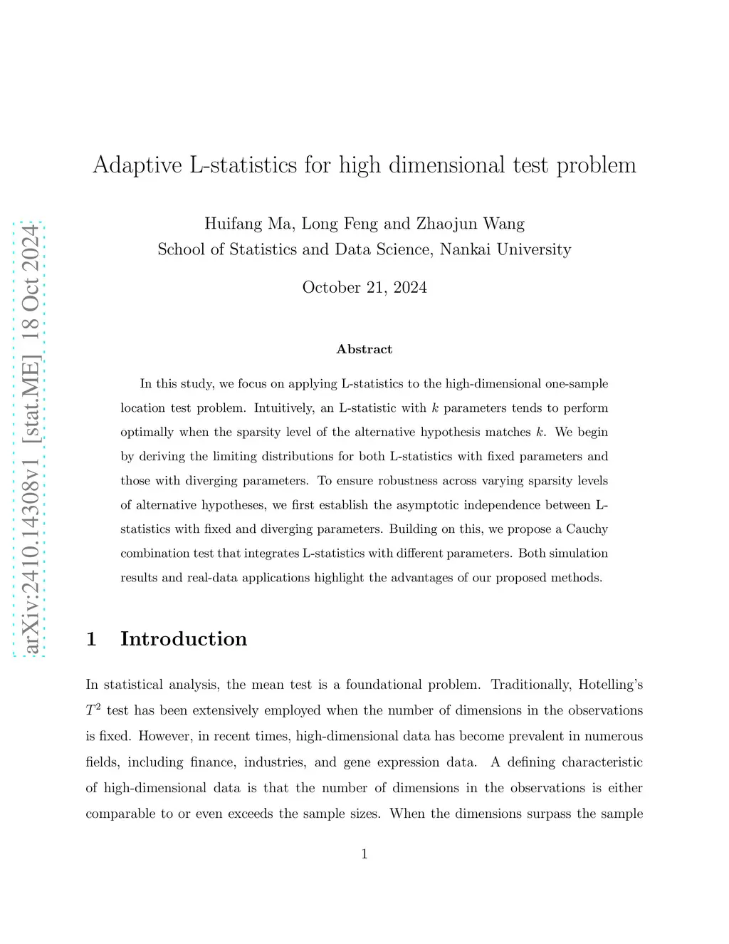 In this study, we focus on applying L-statistics to the high-dimensional one-sample location test problem. Intuitively, an L-statistic with parameters tends to perform optimally when the sparsity level of the alternative hypothesis matches . We begin by deriving the limiting distributions for both L-statistics with fixed parameters and those with diverging parameters. To ensure robustness across varying sparsity levels of alternative hypotheses, we first establish the asymptotic independence between L-statistics with fixed and diverging parameters. Building on this, we propose a Cauchy combination test that integrates L-statistics with different parameters. Both simulation results and real-data applications highlight the advantages of our proposed methods.
