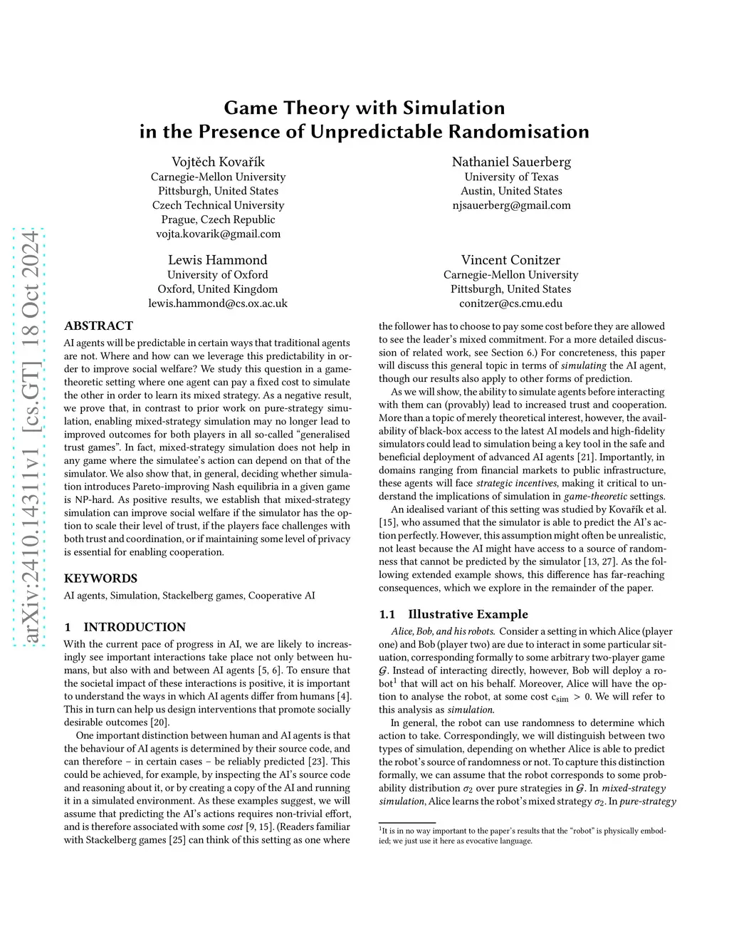 Game Theory with Simulation in the Presence of Unpredictable Randomisation