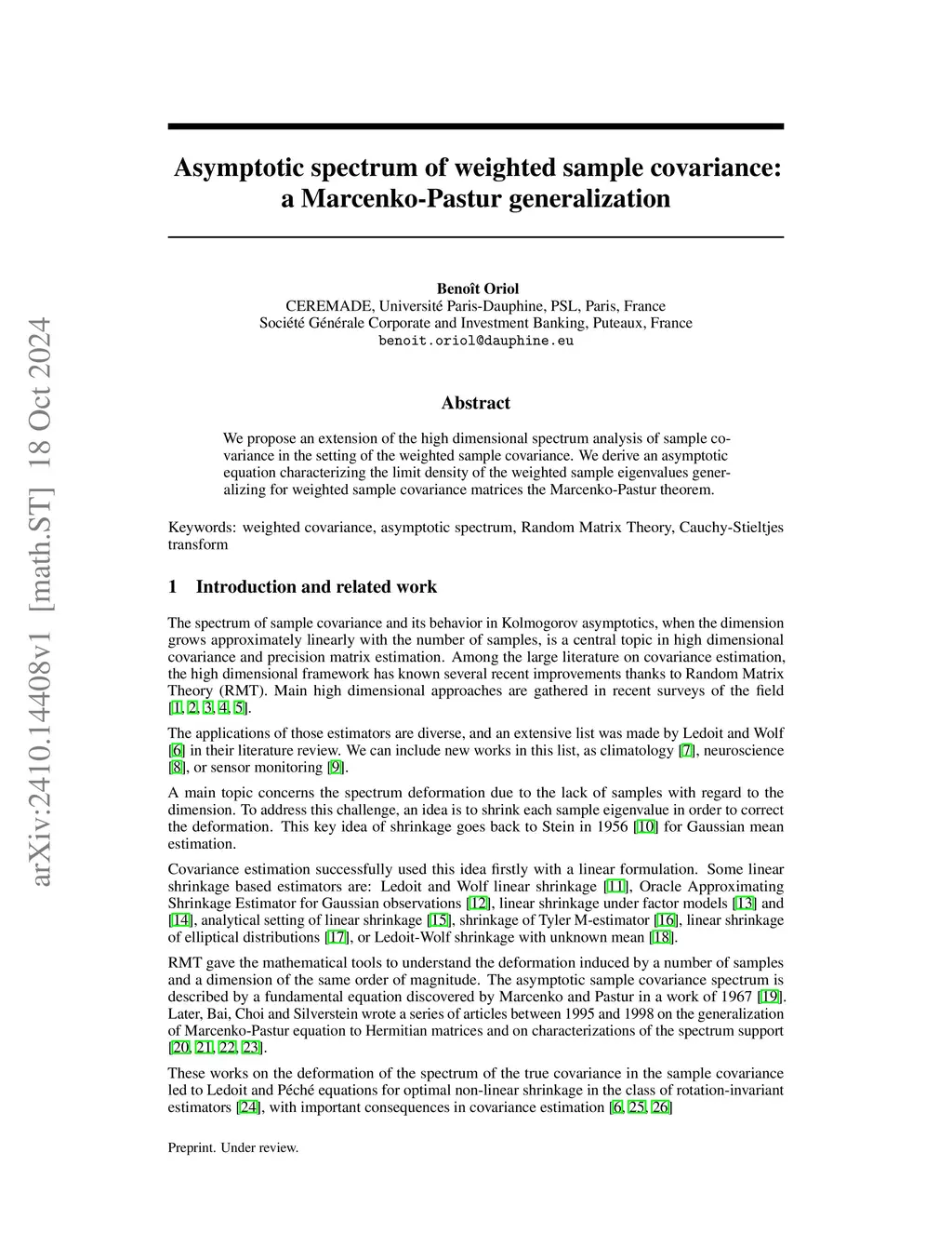 We propose another proof of the high dimensional spectrum convergence of the weighted sample covariance, more concise and self-sufficient but with stronger, but reasonable assumptions. We explain and illustrates this theorem for different weight distributions and show how the spectrum behaves in finite samples with heavy tails. The general purpose is to provide a detailed introduction to the high dimensional spectrum of weighted sample covariance.