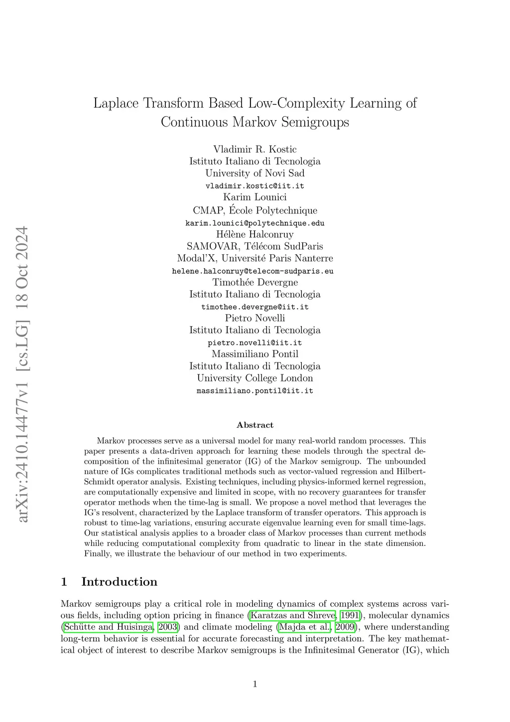 Laplace Transform Based Low-Complexity Learning of Continuous Markov Semigroups