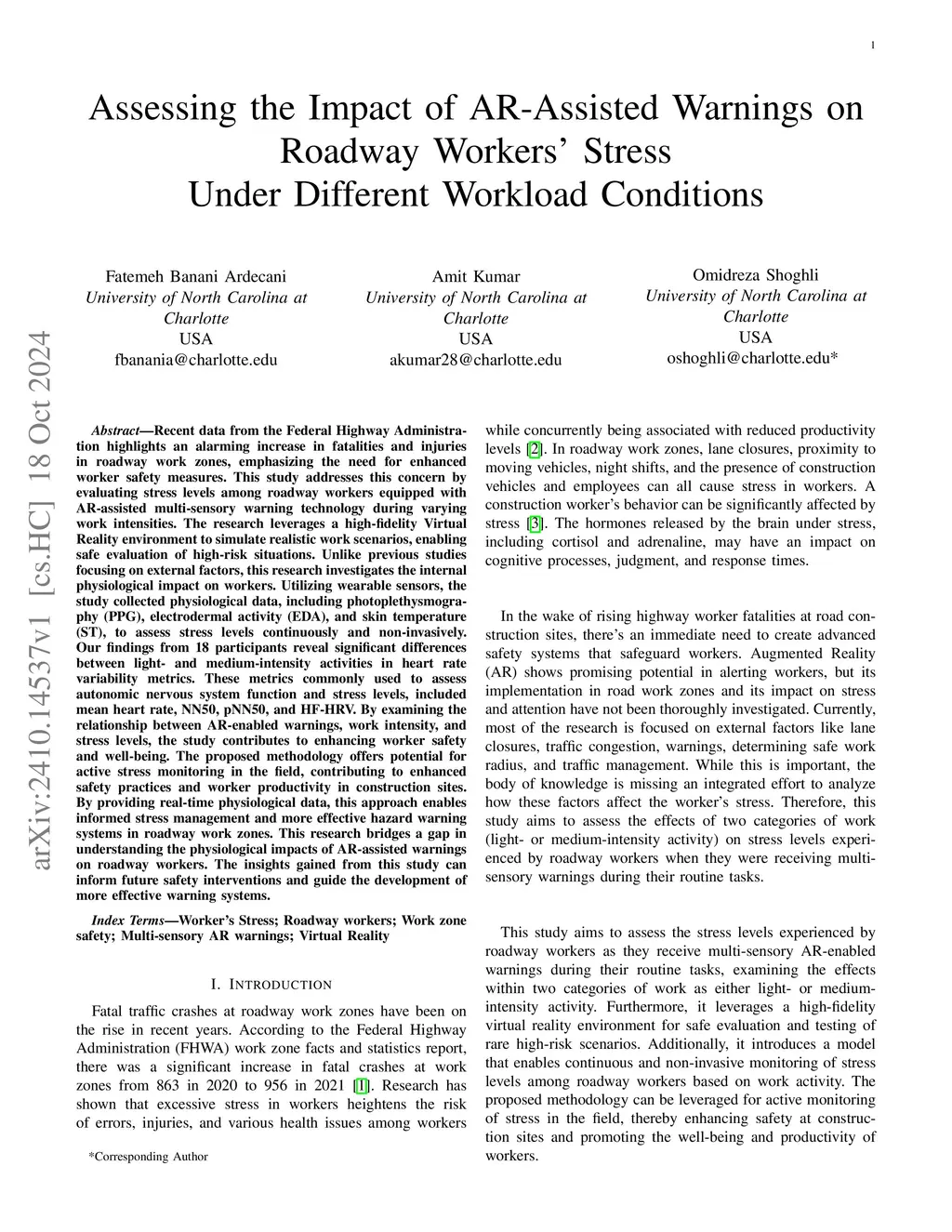 Assessing the Impact of AR-Assisted Warnings on Roadway Workers' Stress