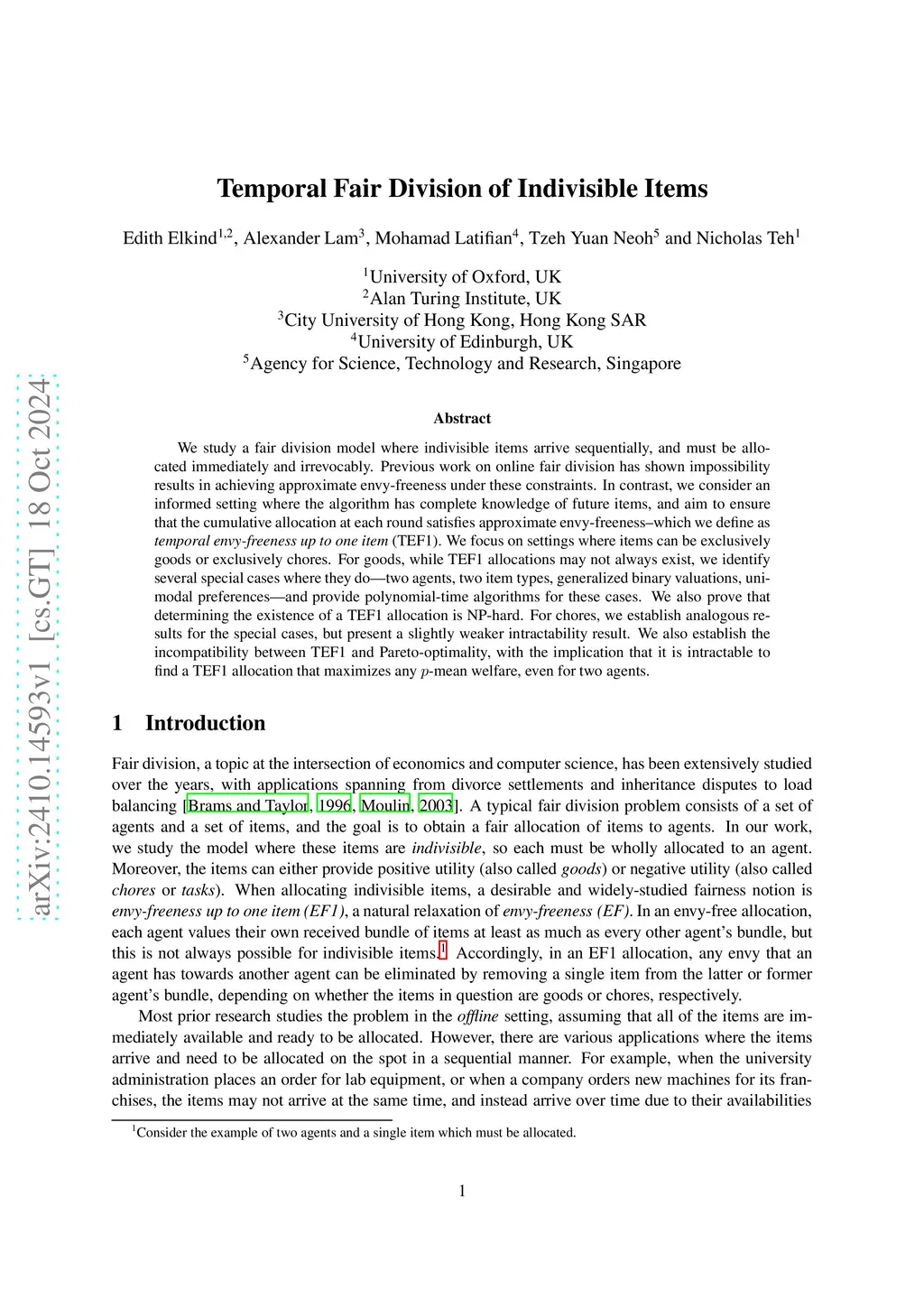 We study a fair division model where indivisible items arrive sequentially, and must be allocated immediately and irrevocably. Previous work on online fair division has shown impossibility results in achieving approximate envy-freeness under these constraints. In contrast, we consider an informed setting where the algorithm has complete knowledge of future items, and aim to ensure that the cumulative allocation at each round satisfies approximate envy-freeness -- which we define as temporal envy-freeness up to one item (TEF1). We focus on settings where items can be exclusively goods or exclusively chores. For goods, while TEF1 allocations may not always exist, we identify several special cases where they do -- two agents, two item types, generalized binary valuations, unimodal preferences -- and provide polynomial-time algorithms for these cases. We also prove that determining the existence of a TEF1 allocation is NP-hard. For chores, we establish analogous results for the special cases, but present a slightly weaker intractability result. We also establish the incompatibility between TEF1 and Pareto-optimality, with the implication that it is intractable to find a TEF1 allocation that maximizes any -mean welfare, even for two agents.