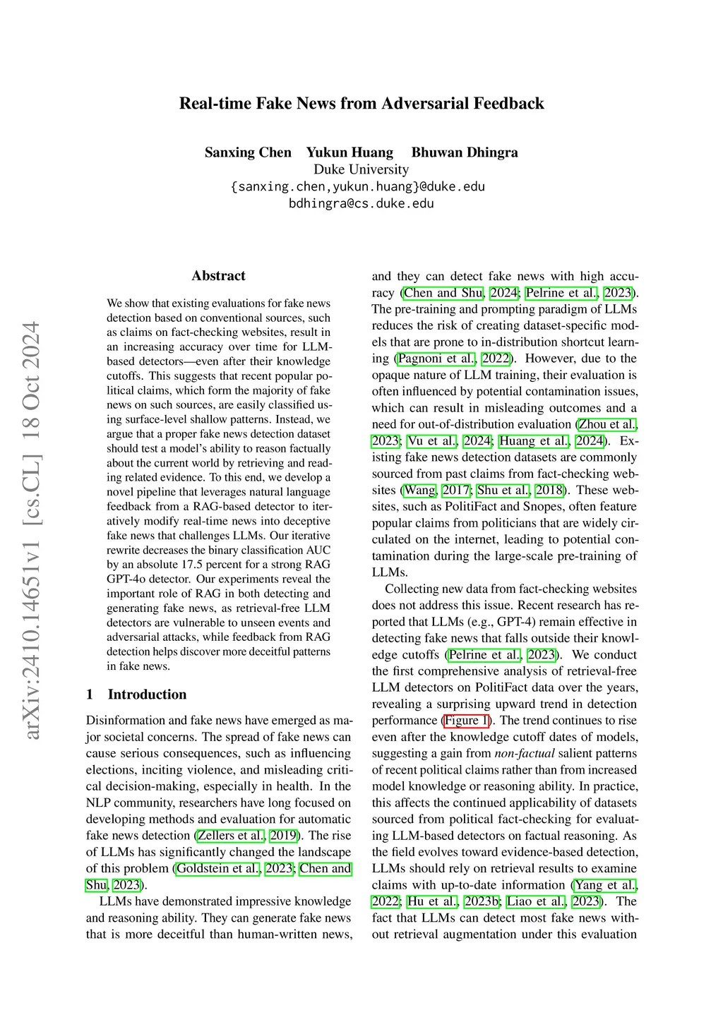 We show that existing evaluations for assessing the factuality of news from conventional sources, such as claims on fact-checking websites, result in high accuracies over time for LLM-based detectors-even after their knowledge cutoffs. This suggests that recent popular false information from such sources can be easily identified due to its likely presence in pre-training/retrieval corpora or the emergence of salient, yet shallow, patterns in these datasets. Instead, we argue that a proper factuality evaluation dataset should test a model's ability to reason about current events by retrieving and reading related evidence. To this end, we develop a novel pipeline that leverages natural language feedback from a RAG-based detector to iteratively modify real-time news into deceptive variants that challenge LLMs. Our iterative rewrite decreases the binary classification ROC-AUC by an absolute 17.5 percent for a strong RAG-based GPT-4o detector. Our experiments reveal the important role of RAG in both evaluating and generating challenging news examples, as retrieval-free LLM detectors are vulnerable to unseen events and adversarial attacks, while feedback from RAG-based evaluation helps discover more deceitful patterns.
