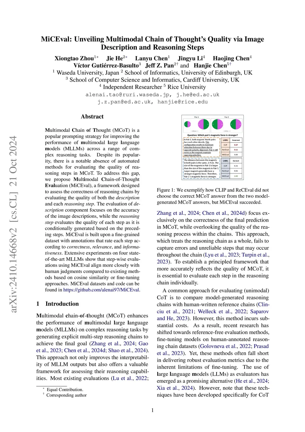 MiCEval: Unveiling Multimodal Chain of Thought's Quality via Image Description and Reasoning Steps