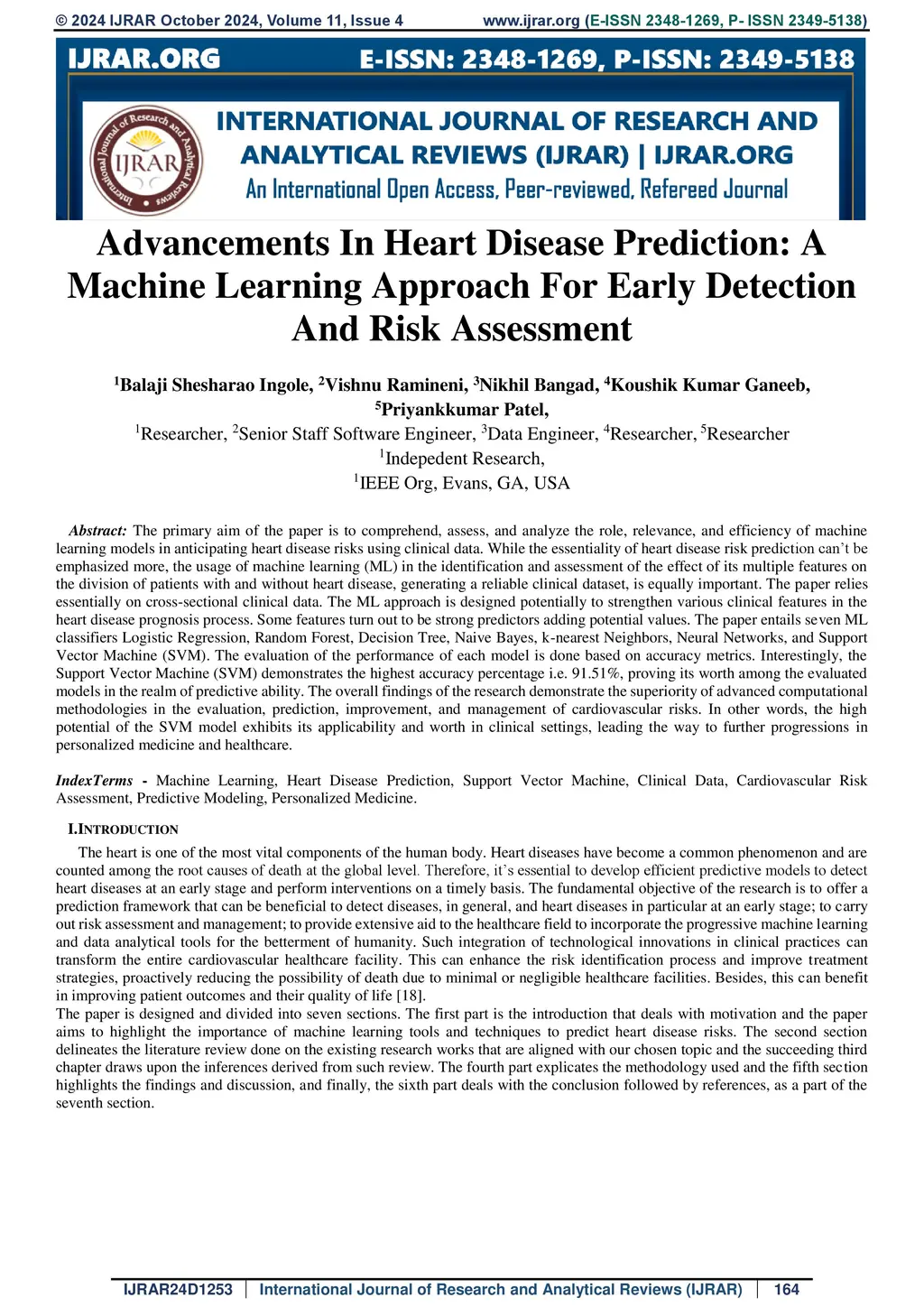 Advancements In Heart Disease Prediction: A Machine Learning Approach