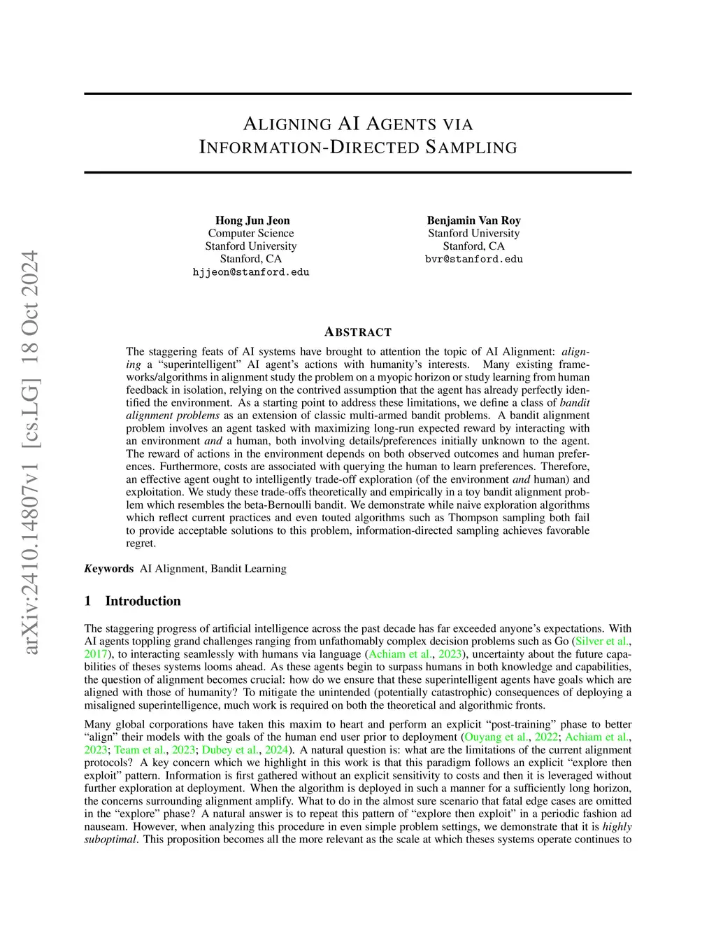 Aligning AI Agents via Information-Directed Sampling