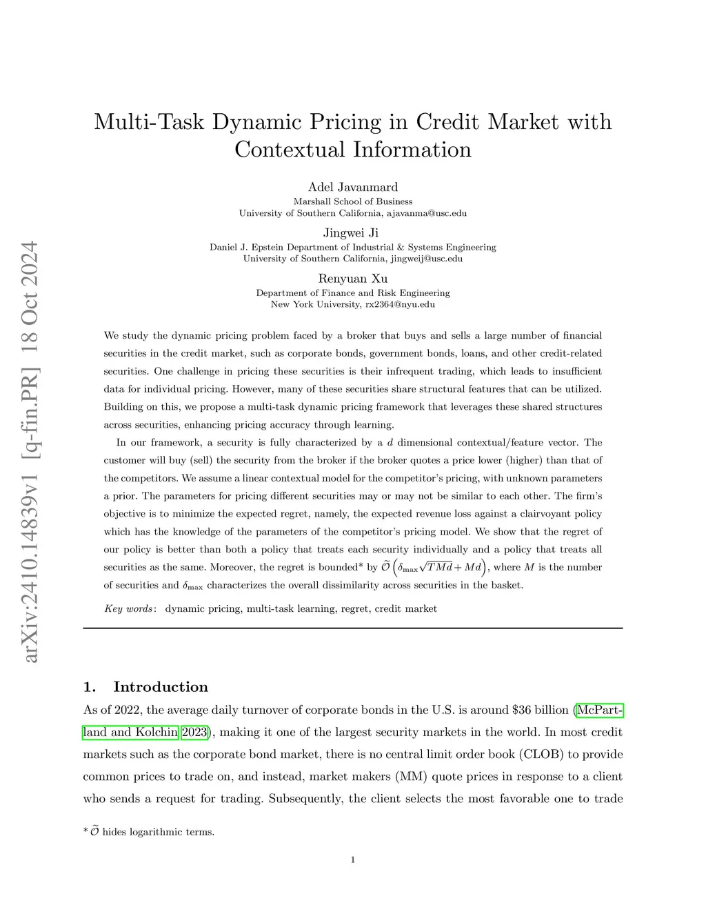 Multi-Task Dynamic Pricing in Credit Market with Contextual Information