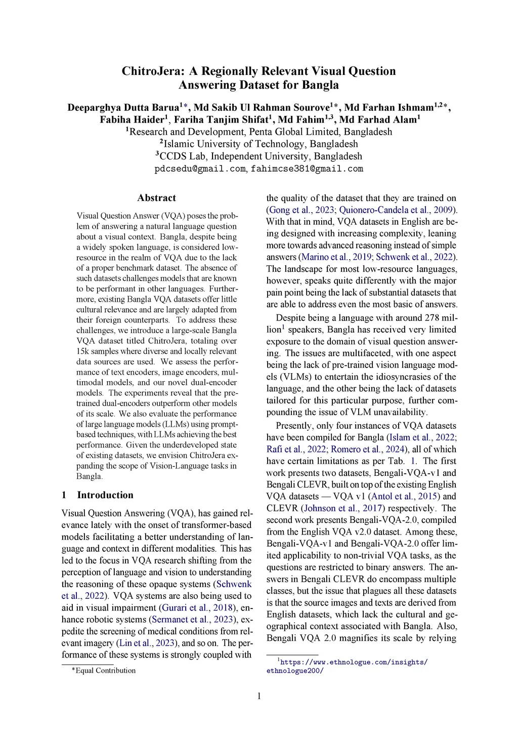ChitroJera: A Regionally Relevant Visual Question Answering Dataset for Bangla