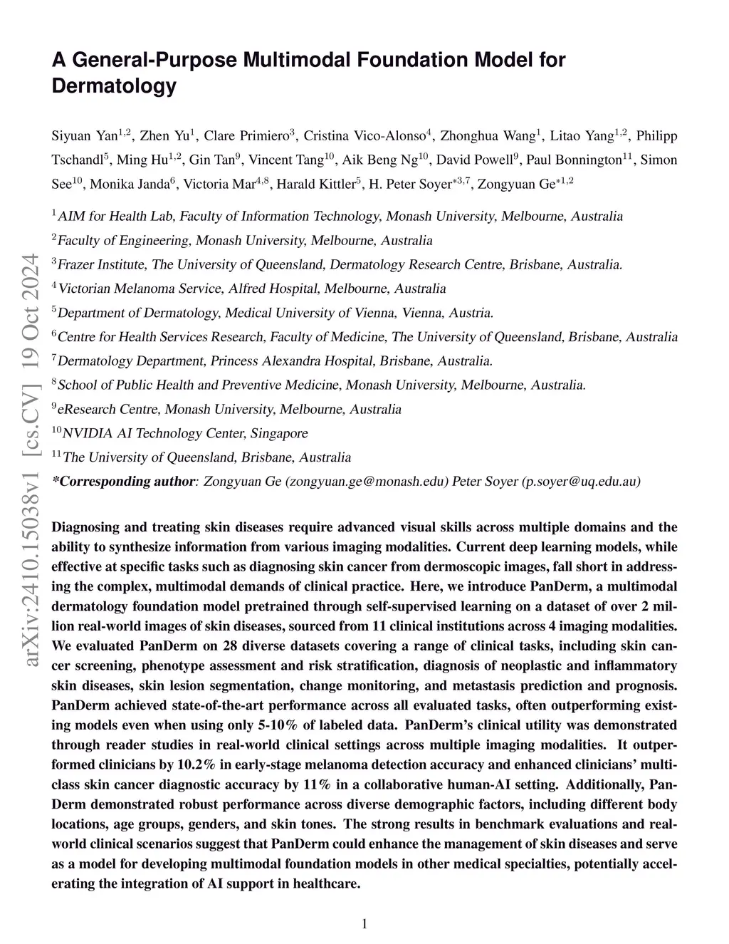A Multimodal Vision Foundation Model for Clinical Dermatology