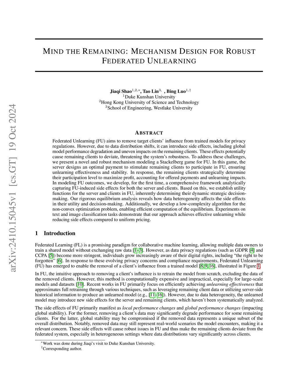 Federated Unlearning (FU) enables the removal of specific clients' data influence from trained models. However, in non-IID settings, removing clients creates critical side effects: remaining clients with similar data distributions suffer disproportionate performance degradation, while the global model's stability deteriorates. These vulnerable clients then have reduced incentives to stay in the federation, potentially triggering a cascade of withdrawals that further destabilize the system. To address this challenge, we develop a theoretical framework that quantifies how data heterogeneity impacts unlearning outcomes. Based on these insights, we model FU as a Stackelberg game where the server strategically offers payments to retain crucial clients based on their contribution to both unlearning effectiveness and system stability. Our rigorous equilibrium analysis reveals how data heterogeneity fundamentally shapes the trade-offs between system-wide objectives and client interests. Our approach improves global stability by up to 6.23\%, reduces worst-case client degradation by 10.05\%, and achieves up to 38.6\% runtime efficiency over complete retraining.